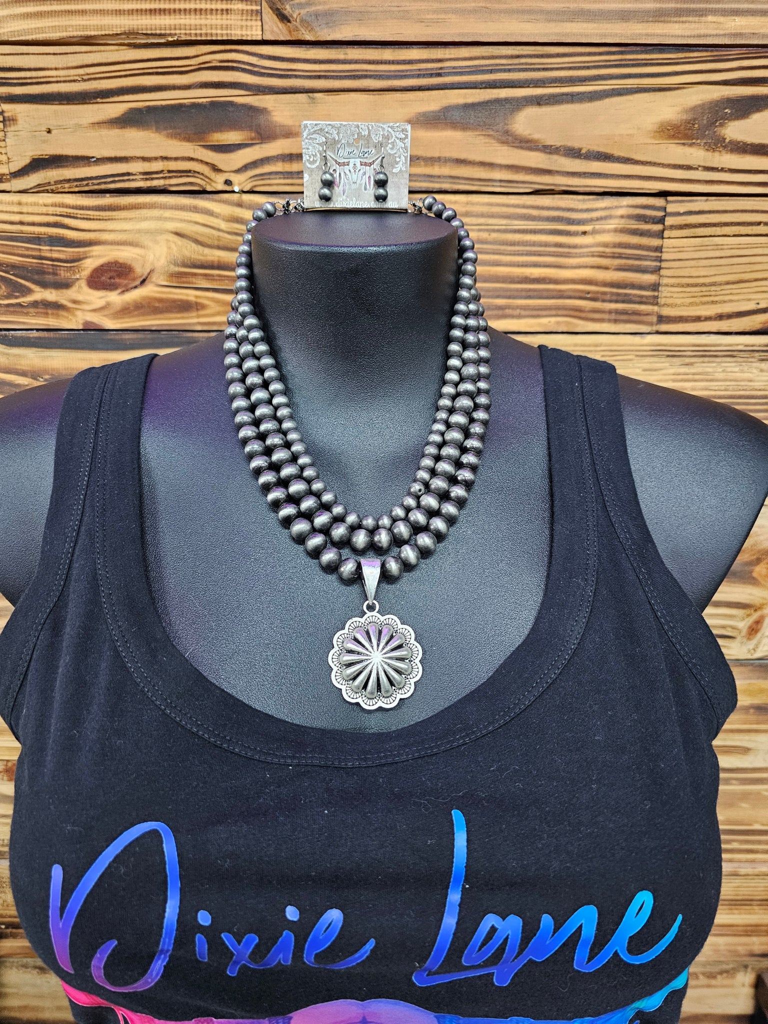 18" Long, Concho Pendant Navajo Pearl Necklace & Earring Set